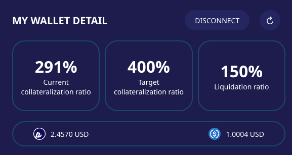 (Ratio is based on pUSD to USDC, so if PERI prices decreases, you need to put more PERI to cover the amount of loss)