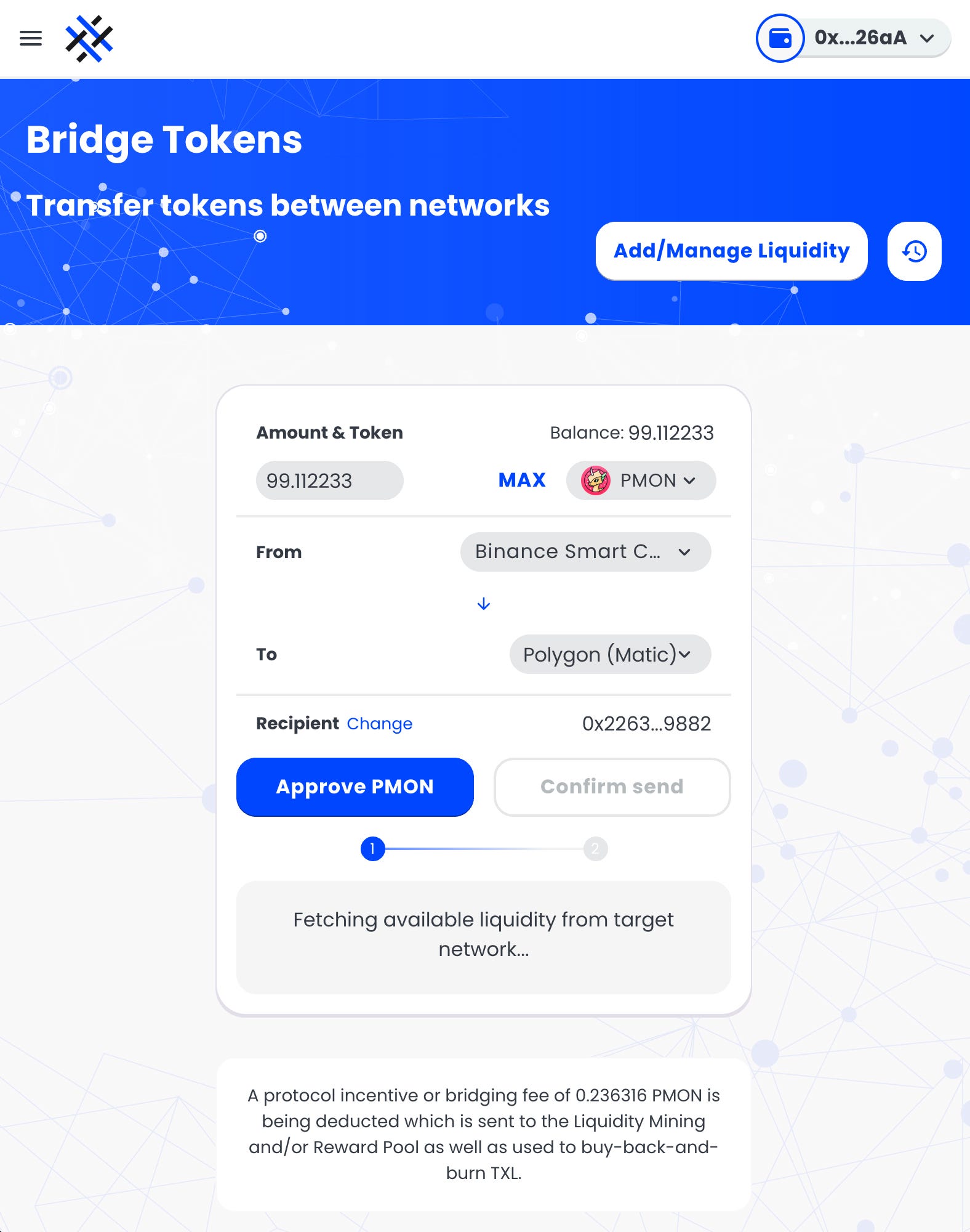 To facilitate transferring PMON tokens from Ethereum or Binance Smart Chain to Polygon, you can leverage the outstanding UX of the recently released Cross-Chain Bridge v2 from their partner, the leading infrastructure provider, Tixl.