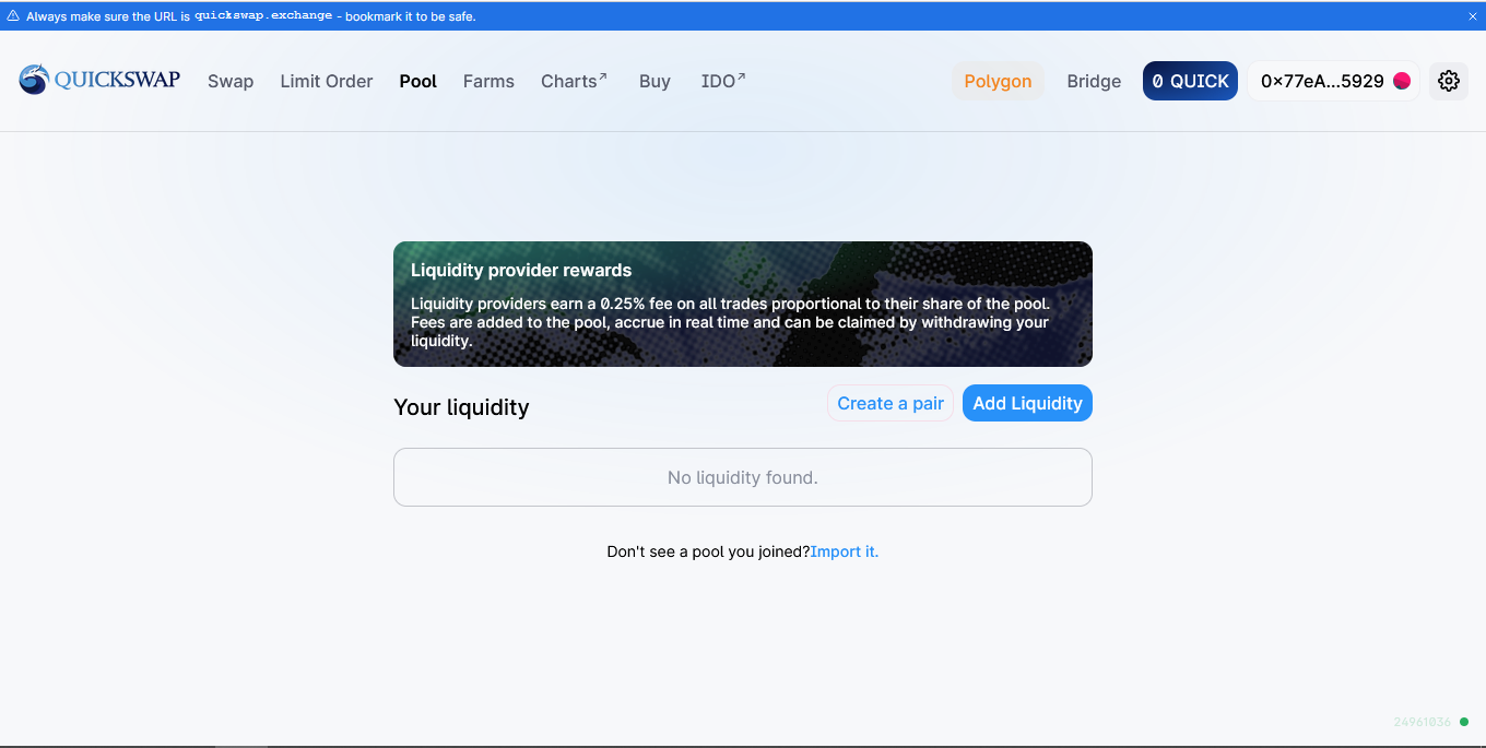 First, login to your MetaMask wallet and move on to https://quickswap.exchange/#/pool