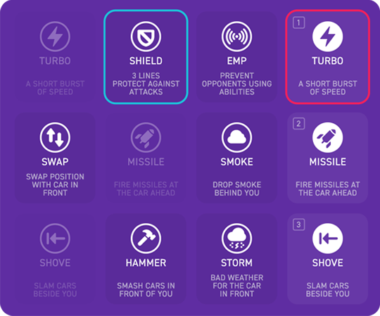 - 1–2 tribe abilities. Abilities are equipped before the race begins. Used to disrupt opponents at the most opportune time to give you an advantage in the race.